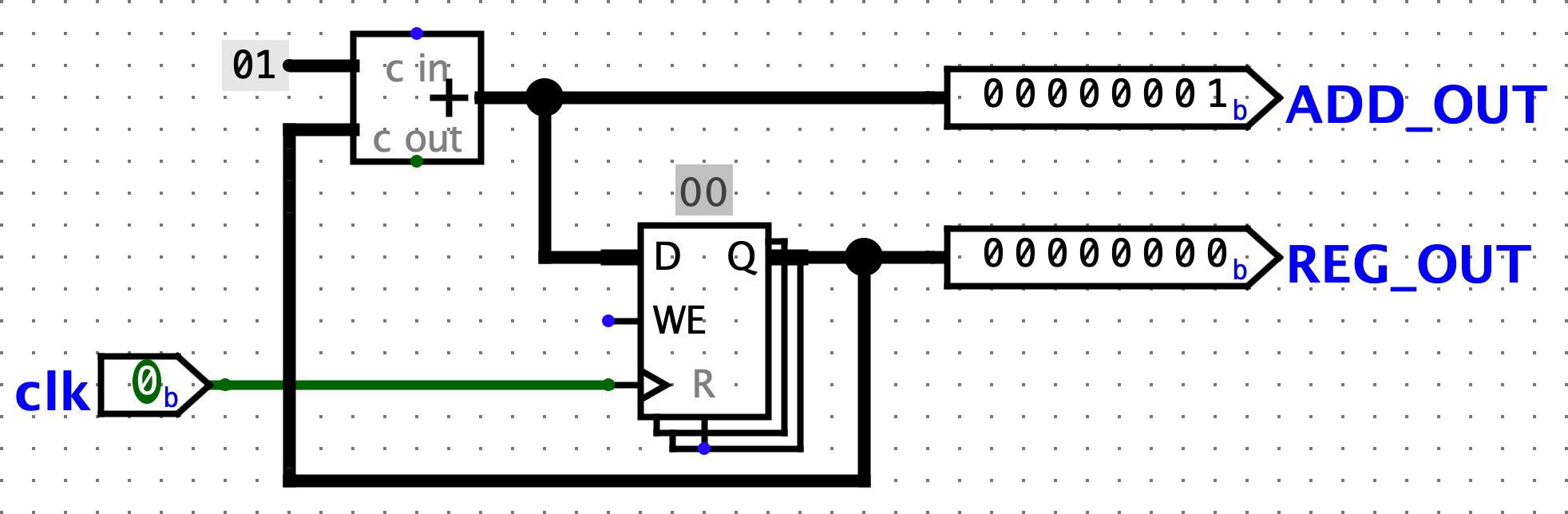 ADD_OUTand the output of the register toREG_OUT. Thus, by the end, your circuit should look similar to: