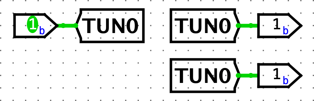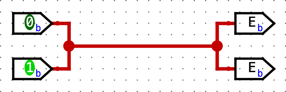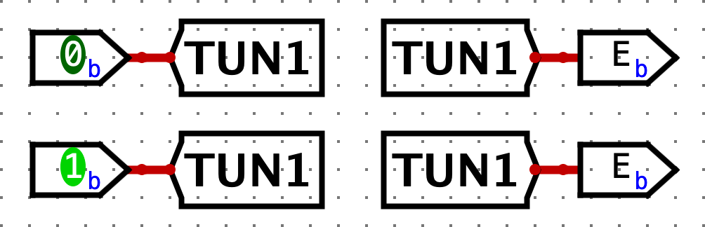 A tunnel allows you draw an "invisible wire" to bind two points together. Tunnels are grouped by case-sensitive labels give to a wire. They are used to connect wires like so: