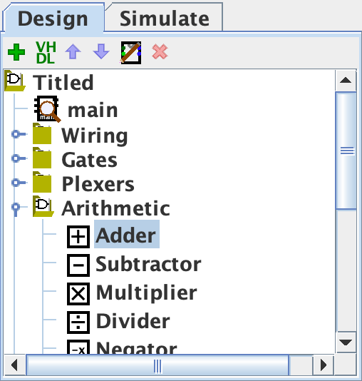 Addersubcircuit from theArithmeticlibrary (circuit selector on the left side) and place the adder into yourAddMachinesubcircuit.